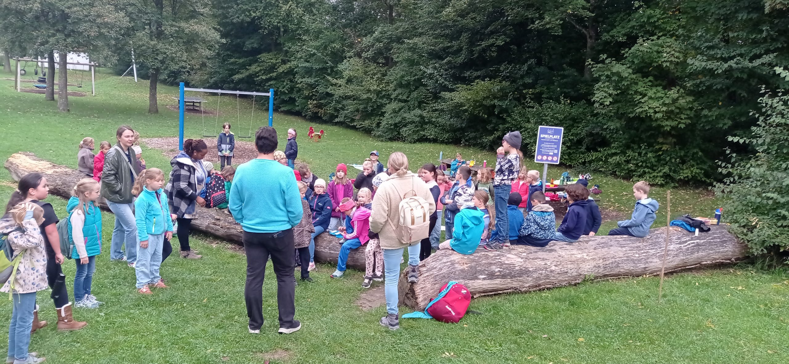 Am Dienstagmorgen strömten unsere Schülerinnen und Schüler schon kurz nach Unterrichtsbeginn gut ausgerüstet mit Rucksäcken wieder nach draußen. Verschiedene Ziele steuerten die Klassen an und verbrachten einen wunderschönen Tag im Freien. Dort war viel Zeit einander kennenzulernen, miteinander zu spielen oder tolle Entdeckungen zu machen.